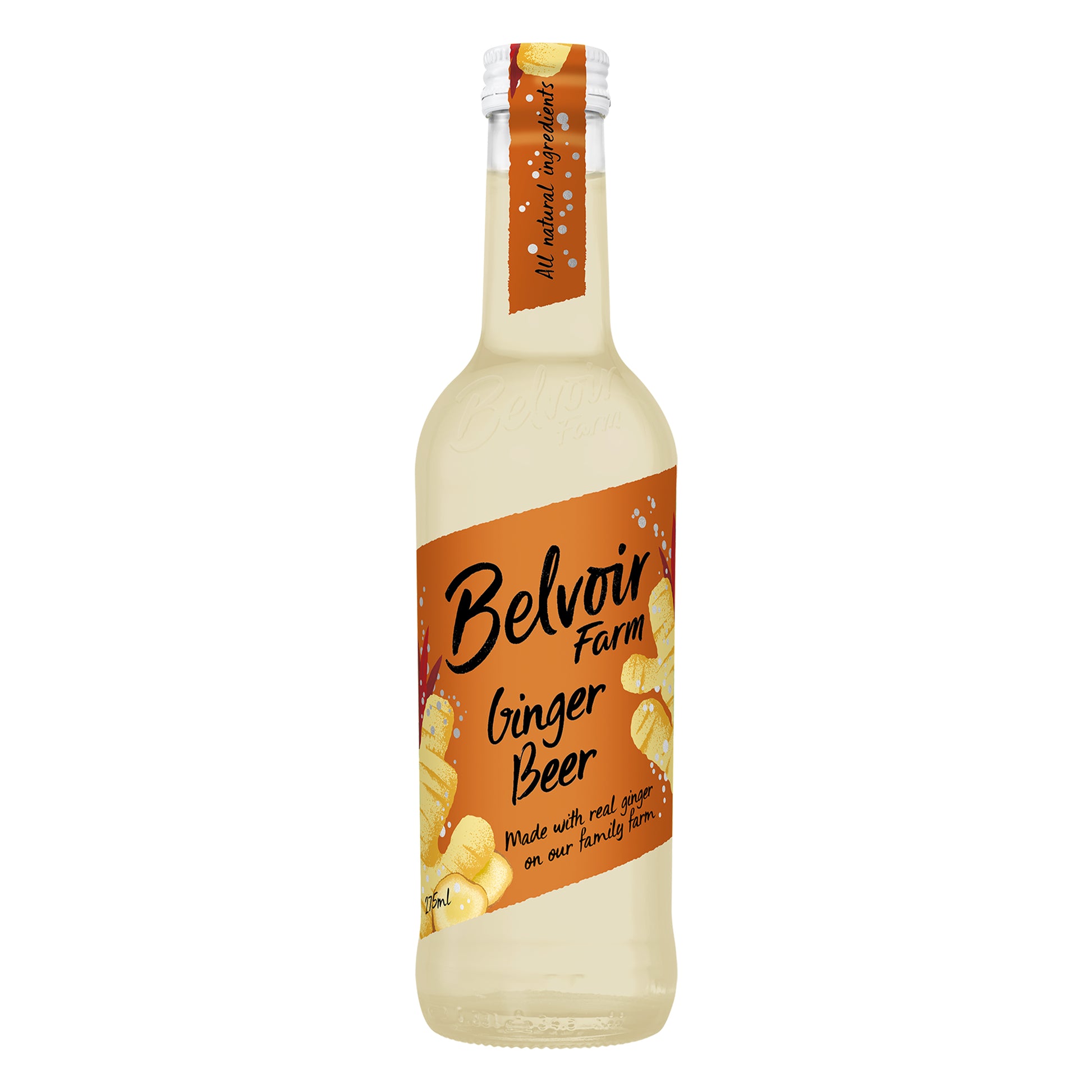 If you like your drinks bold and tangy, this Organic Ginger Beer is undoubtedly the pressé for you. This is a proper old-fashioned ginger beer, made by cooking plenty of fresh organic ginger for an authentic fiery taste. We then blend it with lots of organic lemon juice and lightly sparkling spring water to create a seriously spicy yet refreshing drink. Serve Belvoir Organic Ginger Beer chilled to wow the taste buds of your friends and family.